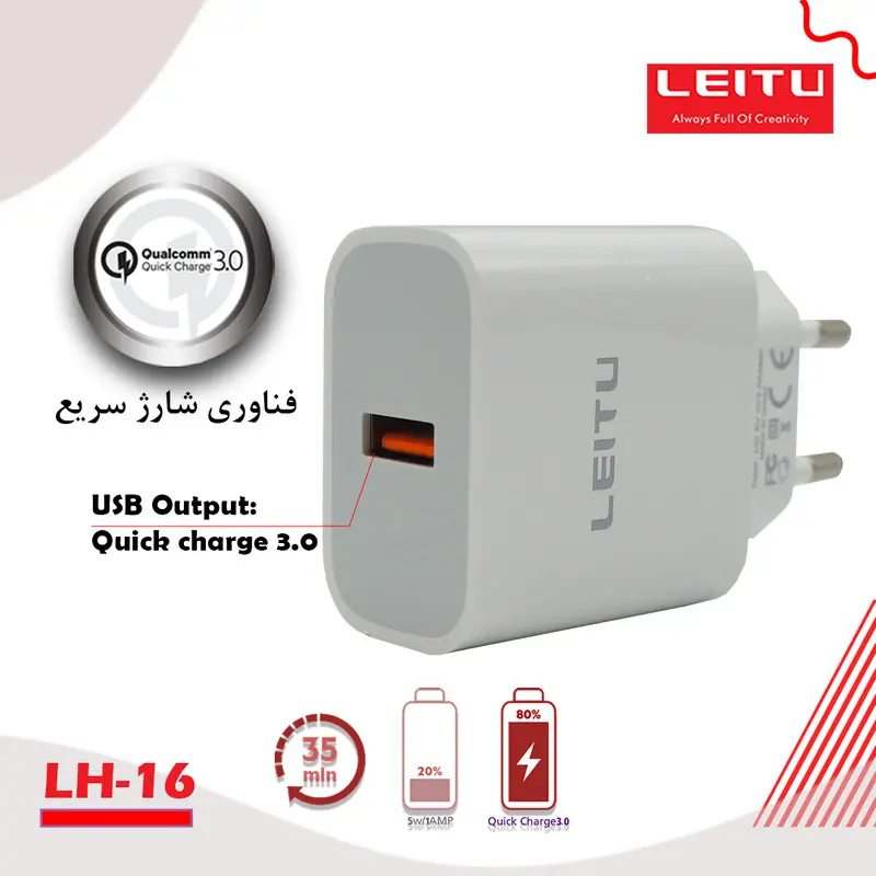 شارژر دیواری لیتو (LEITU) مدل LH-16 به همراه کابل تایپ سی